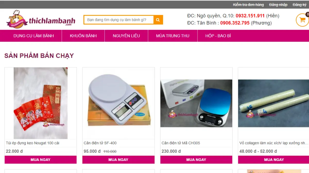 Thích Làm Bánh là đơn vị chuyên kinh doanh các sản phẩm liên quan đến làm bánh như nguyên liệu, dụng cụ, khuôn khay,… Bạn sẽ thích nơi đây bởi sự đa dạng và dồi dào từ nguồn hàng.