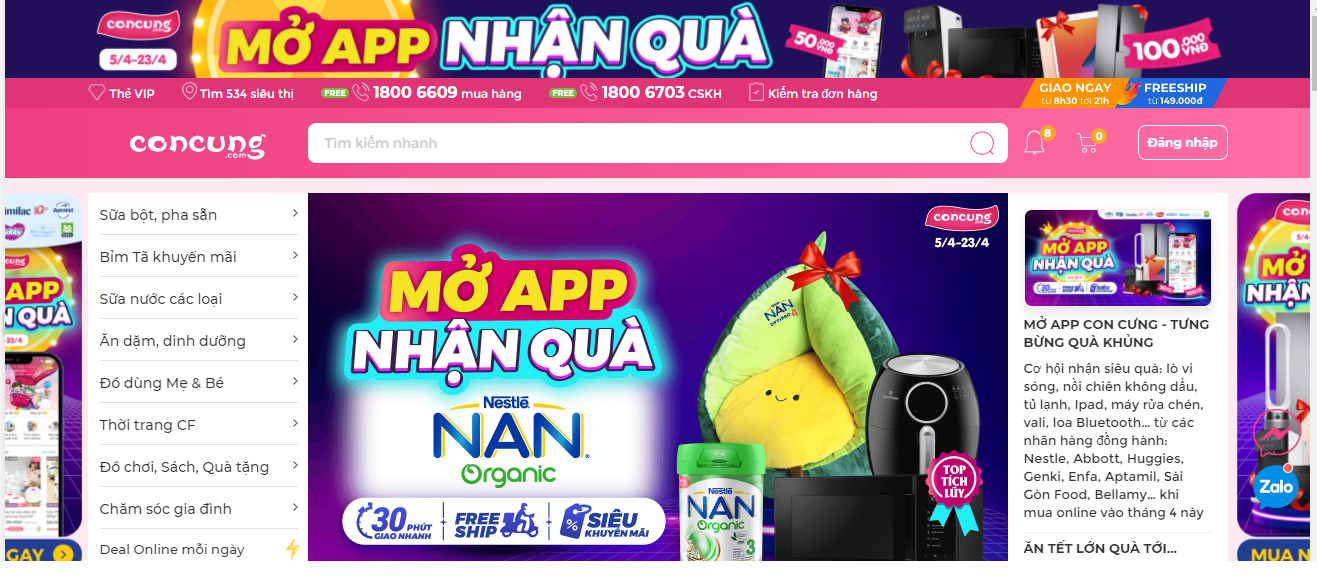 Shop bán đồ trẻ em Con Cưng