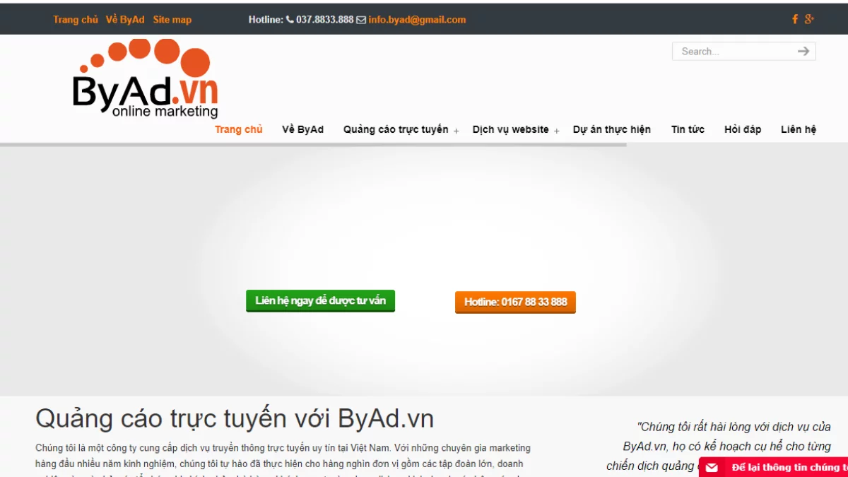 ByAd.vn ra đời nhằm hỗ trợ mạnh mẽ cho khách hàng trong lĩnh vực quảng cáo trực tuyến. ByAd.vn là đơn vị trực thuộc Công ty TVCN VIETNAM – một doanh nghiệp trẻ, hoạt động mạnh mẽ trong lĩnh vực công nghệ thông tin, truyền thông quảng cáo, đang dần khẳng định là một trong những công ty đi đầu trong lĩnh vực cung cấp các dịch vụ quảng cáo trực tuyến, truyền thông trực tuyến, tư vấn công nghệ thông tin cho doanh nghiệp. Đội ngũ nhân sự là những kỹ sư công nghệ giỏi, các chuyên viên tư vấn marketing hàng đầu với nhiều năm kinh nghiệm, đội ngũ chuyên viên chăm sóc khách hàng tận tâm, được đào tạo, làm việc trong môi trường năng động, chúng tôi khẳng định mang lại lợi ích thiết thực cho khách hàng.