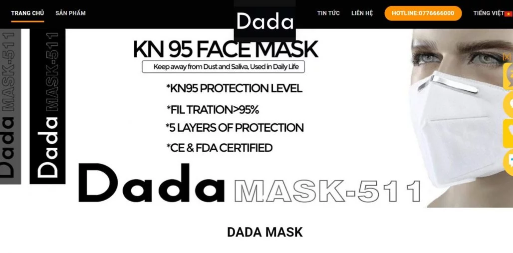 Công ty TNHH Dada concept là một trong 10 công ty sản xuất khẩu trang y tế uy tín tại tp Hồ Chí Minh. Dada mask được sản xuất dựa trên công nghệ than hoạt tính giúp kháng khuẩn, lọc bụi, khói, kháng tia UV lên đến 95%. Tất cả các sản phẩm của công ty đều đạt chứng chỉ CE/016400/0320, đủ tiêu chuẩn xuất khẩu sang các thị trường quốc tế.