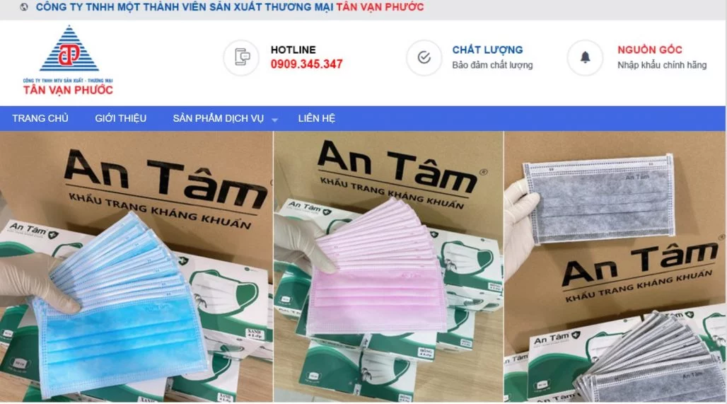 Công ty TNHH MTV sản xuất thương mại Tân Vạn Phước là doanh nghiệp đã có 17 năm kinh nghiệm trong lĩnh vực sản xuất hàng tiêu dùng. Với phương châm: “Sự hài lòng của khách hàng chính là thước đo cho sự thành công của doanh nghiệp”, mỗi sản phẩm của công ty đều có chất lượng tuyệt vời, giá cả cạnh tranh, giao hàng đúng hẹn, tư vấn tận tình. Sản phẩm khẩu trang y tế An Tâm là một mặt hàng nổi bật của công ty. Sản phẩm giúp ngăn ngừa vi khuẩn, khói bụi, ôi nhiễm môi trường, được dùng trong bệnh viện, phòng khám, y tế cộng đồng.
