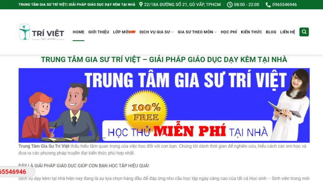 Là một trong những đơn vị đi đầu trong lĩnh vực gia sư dạy kèm tại nhà. Trung Tâm Gia Sư Trí Việt hiện nay là thương hiệu được rất nhiều quý PHỤ HUYNH/ HỌC VIÊN lựa chọn bởi sự uy tín, chất lượng và thái độ phục vụ chuyên nghiệp.