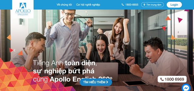 Có mặt tại Việt Năm từ năm 1995, Trung tâm Anh ngữ Quốc tế Apollo là trung tâm đào tạo Tiếng Anh 100% vốn nước ngoài đầu tiên ở Việt Nam. Apollo được biết đến là trung tâm ngoại ngữ chất lượng với đội ngũ giáo viên tiếng Anh bản xứ đến từ nhiều rất nhiều trường đại học danh tiếng.