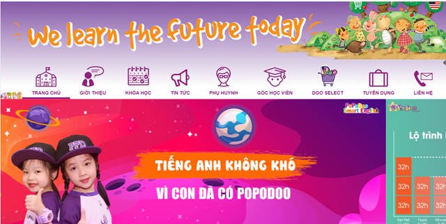 Hệ thống Anh ngữ quốc tế PoPoDoo được thành lập ngày 1/7/2007 với sứ mệnh trở thành tổ chức giáo dục Tiếng Anh trẻ em số 1 tại Việt Nam từ nghiên cứu, dạy học cho đến cung cấp hệ thống giáo trình tiêu chuẩn, các thiết bị học tập tiếng Anh hiệu quả. Từ đó tạo ra môi trường học tập Tiếng Anh toàn diện nhất cho trẻ em Việt Nam. Sau 10 năm phát triển, hiện nay PoPoDoo gồm 16 đơn vị trực thuộc và gần 100 đơn vị liên kết trên toàn quốc.