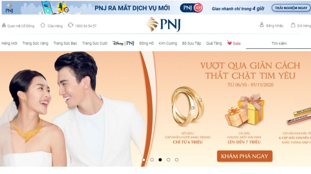 PNJ giữ vị trí số 1 về chế tác và bán lẻ trang sức cao cấp hàng đầu châu Á. Đây là nơi cung cấp sản phẩm trang sức cao cấp từ vàng, bac, đá quý như nhẫn, dây chuyền….PNJ tự hào sẽ đáp ứng hoàn hảo nhu cầu của khách hàng về một dòng sản phẩm quà tặng tinh tế cùng kiểu dáng đa dạng, chất lượng vượt trội
