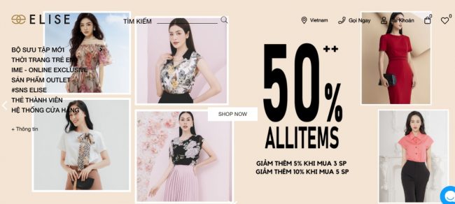 Elise là thương hiệu thời trang cao cấp rất uy tín trên thị trường. Hiện nay, Elise đã có nhiều cửa hàng tại các tỉnh thành khác nhau như minh chứng cho sự tin yêu của khách hàng. Thiết kế của Elise rất hợp thời trang, hợp xu hướng. Shop cũng có các dịp giảm giá tất cả các sản phẩm nên bạn có thể mua được đồ cao cấp phù hợp với túi tiền.